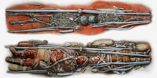 Сама идея такой одежды была известна очень давно. Её следы есть в Сунгирском захоронении (Владимирская область), где нашли три скелета возрастом свыше тридцати тысяч лет. Костюм древних людей восстановили по многочисленным костяным бусинам, покрывавшим одежду. Она представляла собой меховой комбинезон вроде того, который носят народы Севера.