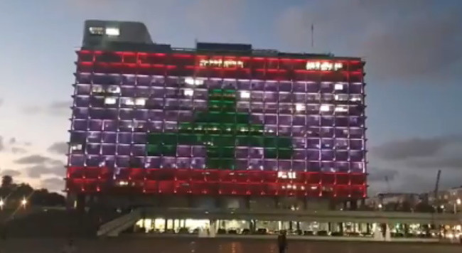 Ратуша Тель-Авива окрасилась в цвета флага Ливана