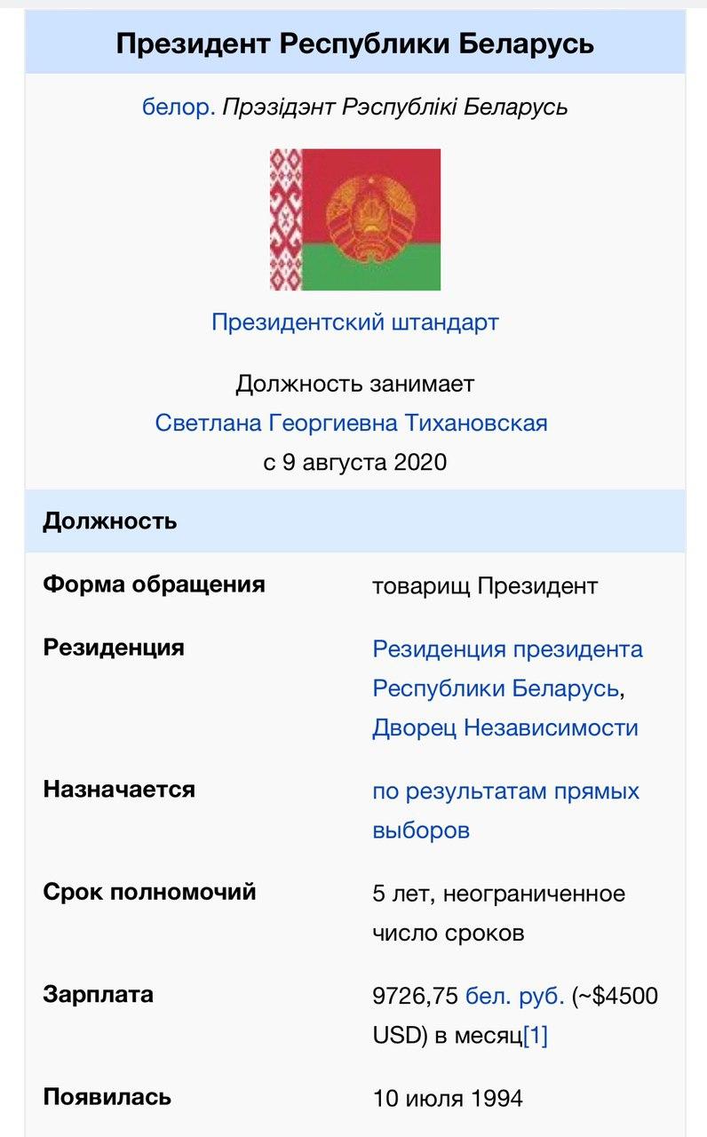 Прекрасно. Посмотрите Википедию, которая сообщает, что Президентом Белоруссии с 9 августа является Тихановская. Проверили. Не фейк.