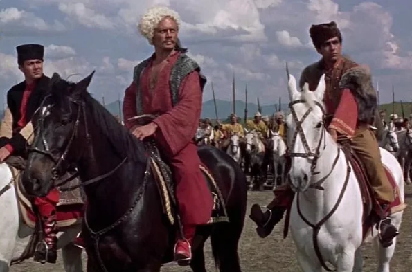 Андрий - Тони Кертис. Сыграл неплохо, но, блин, почему он выглядит, как минимум, погодкой своему отцу? Именно Андрию уделяется значительное количество сцен в фильме, ведь он же участник любимой американцами "любовной линии".