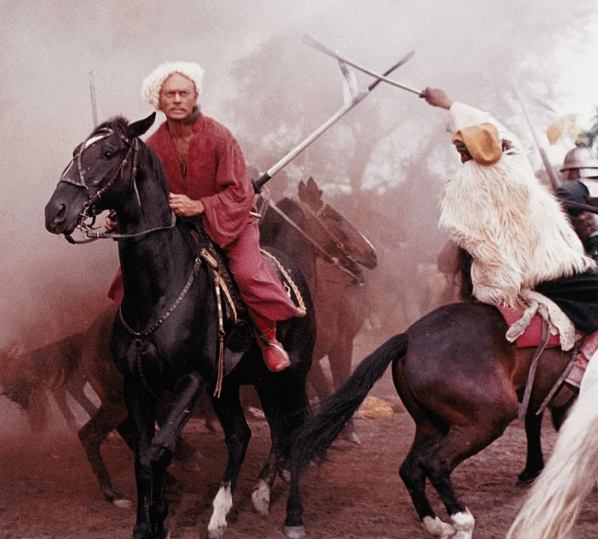 Тарас Бульба - его сыграл Юл Бриннер. От своего книжного персонажа он очень отличается телосложением (видимо, на такую "мелочь" создатели вообще наплевали). А еще Юл Бриннер (имеющий русские корни) больше похож на азиата, нежели на лицо славянской национальности.