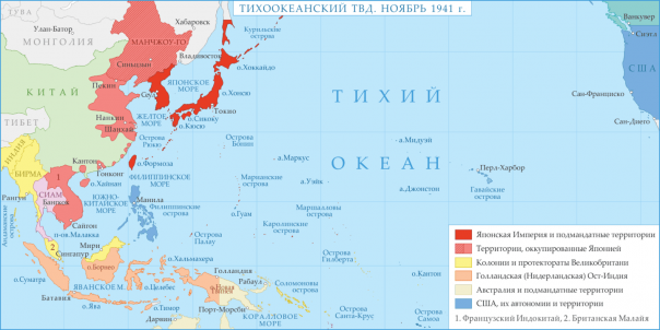 На самом деле этот вопрос можно даже расширить: «А зачем японцы вообще связались со Штатами?» Ведь у Японии в новой войне были две вполне конкретные и понятные цели: прикрыть последний канал внешнего снабжения китайской армии через Британскую Бирму и отжать ресурсы — прежде всего нефть — Голландской Ост-Индии. А принадлежавшие тогда США Филиппины их совершенно не интересовали. Проблема была в географии.