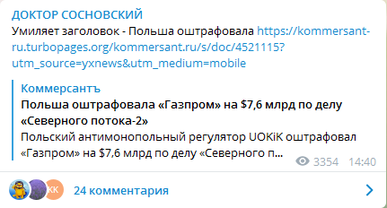 "Я утвердил штрафы на сумму более 29 миллиардов злотых для "Газпрома" (7,6 миллиарда долларов) и более 234 миллиона злотых (61,4 миллиона долларов) для 5 компаний, участвующих в строительстве "Северный поток-2", – заявил президент UOKiK Томаш Хростный.
