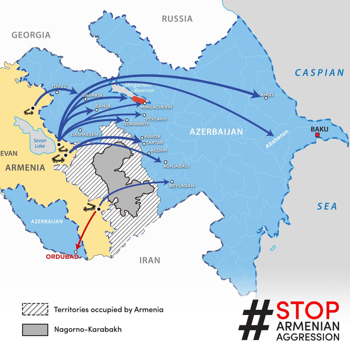 2. Азербайджан обвинил Армению в обстреле Нахичевани из ОТРК. Армения отрицает, что обстреливала Нахичевань.