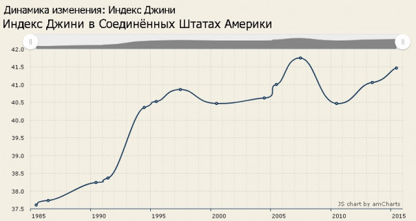 Наглядно видно, как резко изменился индекс расслоения страны (индекс Джинни) после распада СССР.