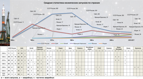 После крушения СССР американским финансистам космос стал не нужен, только в последнее время к нему проснулся интерес коммерческих структур, таких как SpaceX, но в этом году впереди всех оказался Китай с 27 успешными запусками, у США - 25, у России - 12.