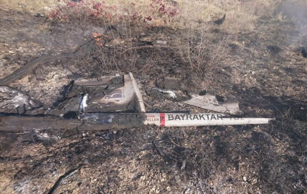 Части фюзеляжа беспилотника турецкого производства: крыло, хвост и электроника. Имеет четыре точки подвески, на которых расположены четыре управляемых авиабомбы с лазерной системой наведения.