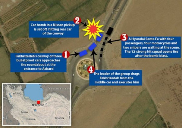 Фахризаде, которого называют «отцом» иранской программы создания ядерной бомбы, был застрелен в минувшую пятницу, 27 ноября. В завершающей стадии операции участвовало двенадцать агентов, которых Ахвазе называет «высококвалифицированными убийцами». Боевики, среди которых была пара снайперов, составляли лишь часть группы заговорщиков численностью 62 человека. Остальные 50 человек отвечали за материально-техническое обеспечение, отмечает иранский журналист.