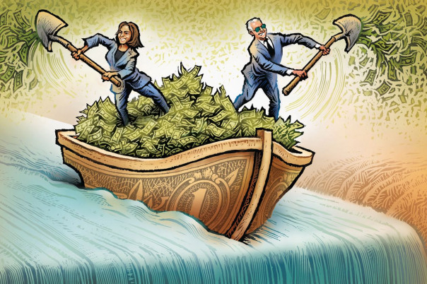 То же делает и Конгресс, доит сокращающийся собственный капитал Соединенных Штатов, чтобы обогатить себя и своих друзей, в то же время бросая обществу достаточно костей, чтобы заставить их замолчать, пока схема Понци не рухнет, как дом из мокрых карт во время урагана.