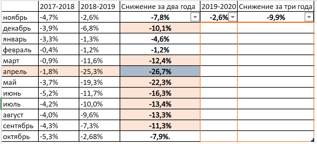 То есть, в прошедшем ноябре был зафиксирован обвал уже третий год подряд!