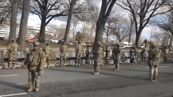 Это видео показывает нацгвардейцев, целые ряды военных - повернувшихся к Байдену спиной. Против гвардейцев сейчас, согласно новостным сообщениям, намереваются открыть слушание за оскорбление Президента и за пренебрежение к своим обязанностям.