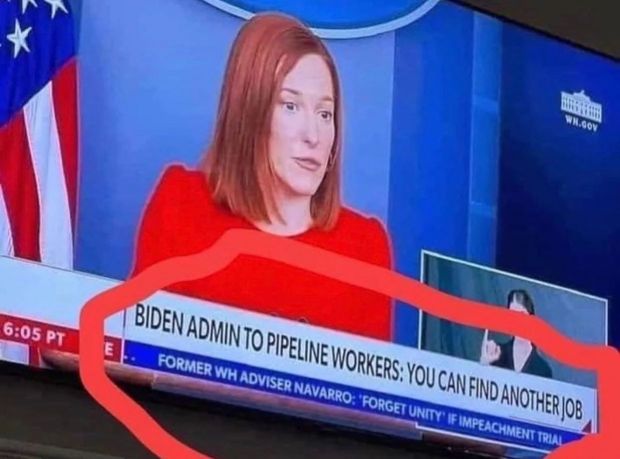 Псаки по традиции старательно уходит от ответа на любые серьёзные вопросы. Лишь изредка у неё наступают минуты неожиданной честности, когда она, например, предлагает нефтянникам и металлургам просто “найти новую работу”, раз уж Байден лишил их средств к существованию.