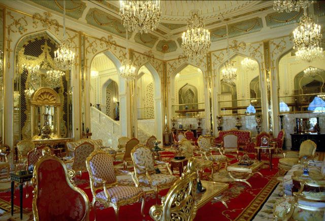 Дворец имеет золотой купол. Он вмещает 1788 комнат, 257 ванных, 18 лифтов, 44 лестницы, 5 бассейнов, конюшни на 200 лошадей, оснащенные кондиционерами, мечеть и подземный гараж. Банкетный зал способен вместить до пяти тысяч человек. Общая площадь дворца — свыше 200 000 м², а его стоимость составляет более 1,3 миллиарда долларов