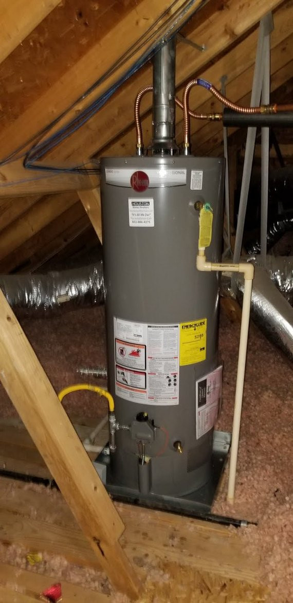 На вход подаётся только холодная вода, нагревается уже непосредственно в доме/квартире. Для этого используются котлы (на картинке выше). В домах в Техасе и печка и котёл очень часто находятся на чердаке (это также важно). Вот он красавец, газовый котёл (бывают и электрические):
