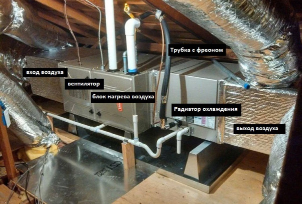 Также, большинство домов в Техасе построены по принципу "холодный чердак". На полу чердака находится теплоизоляционный материал, по краям крыши и сверху присутствуют вентиляционные отверстия, чтобы воздух продувал и охлаждал чердак в жаркую погоду. Все оборудования на чердаке без теплоизоляции. Это важно!