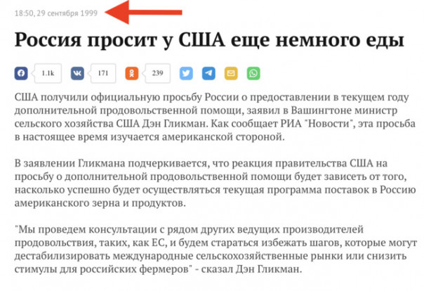 Вот уж угроза, так угроза. Прямо 1999-м годом пахнуло. Вот только Россия сегодняшняя, в отличие от возлюбленной США и ЕС России 2000-х, один из ведущих мировых экспортеров зерна. А уровень самообеспечения продуктами питания в соответствии с Доктриной продовольственной безопасности (да, у нас есть и такая) составляет 80% - 95% в зависимости от категории.