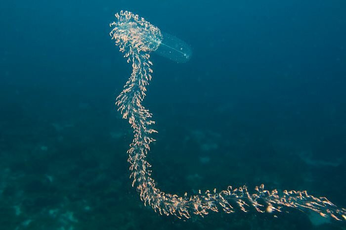 Первый тип называется гастрозооидами, их задача — кормить материнский организм и всю свою многочисленную семейку. У родительницы к чертям редуцируется пищеварительный тракт, теперь она — торпеда, тянущая за собой несколько метров детей.