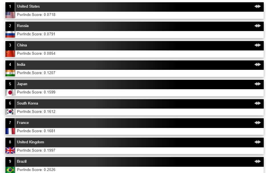 Конечно, можно использовать и многие другие показатели, например, мировое военное положение. Общепризнанно, что Россия находится как минимум на 2-м месте рейтинга самых мощных военных сил на Земле, и военное положение примерно коррелирует с теми же странами, которые находятся примерно в тех же позициях, что и экономически - со знакомыми лицами США, России, Китая, Индии, Японии и т. д. Неужели вы действительно поверите, что страна с признанной военной мощью №2 на Земле занимает только 15-е место в экономическом плане, согласно мошенническому, манипулируемому валютой списку номинального ВВП ? Это лишено всякой логики. Конечно, единственным рациональным объяснением является то, что только страна, экономика которой входит в топ-5 энергопотребления, может сохранять 2-е место среди самых мощных армий в мире.