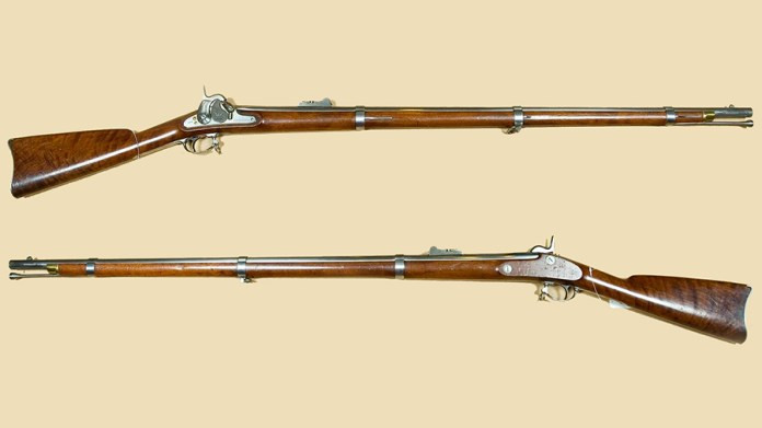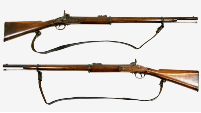 Южане использовали столь же проверенный образец — дульнозарядный британский мушкет «Энфилд» 1853 года, который тоже не мог похвастаться наличием затвора.