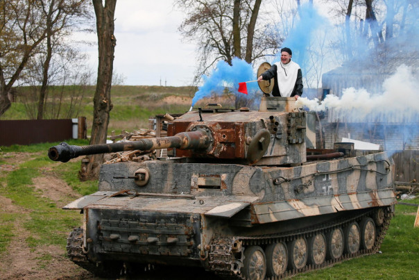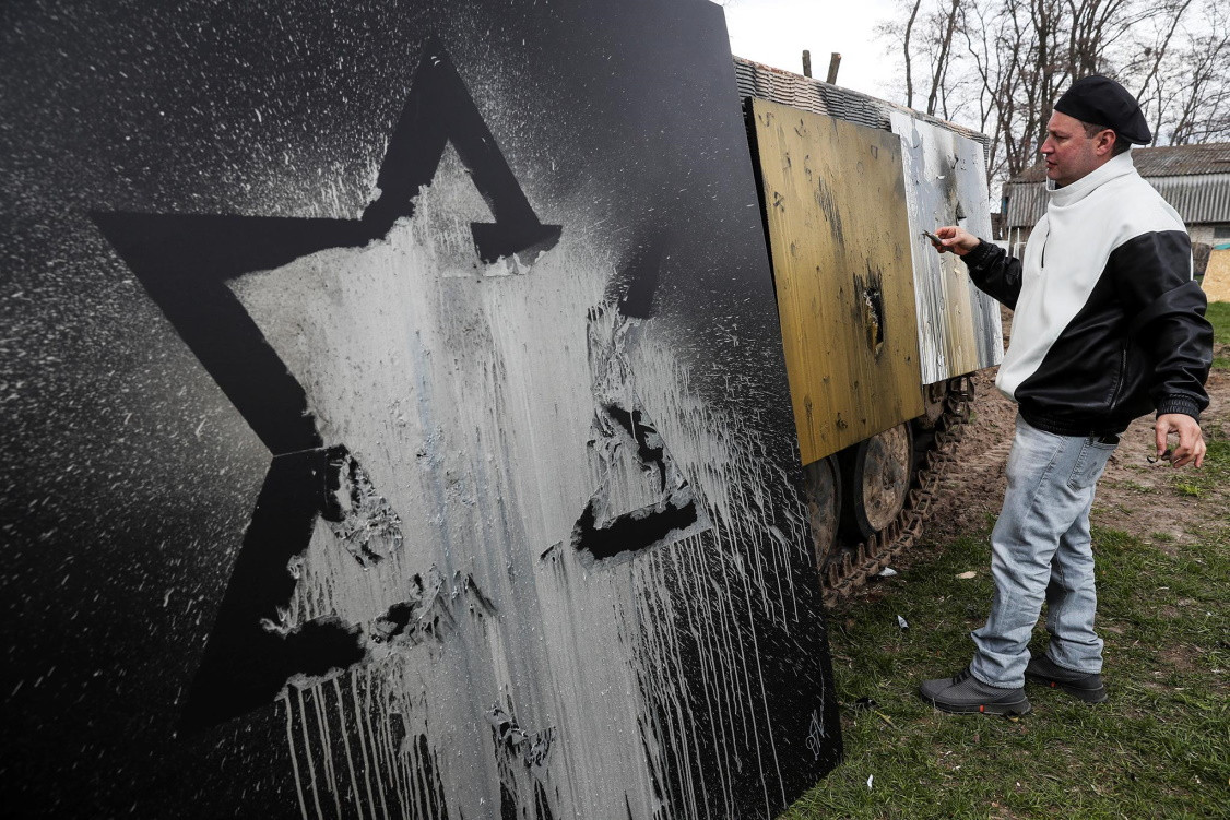 На Украине, откуда Давид родом, он использует для творчества танк.