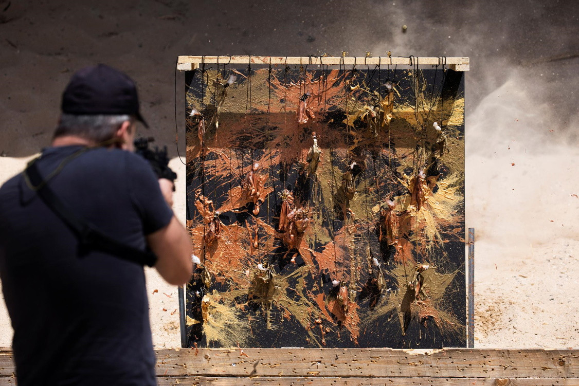 Бывший снайпер Армии обороны Израиля, 42-летний Давид Ройтман, решил серьезно заняться искусством. Однако в качестве инструмента для создания своих полотен вместо кистей он использует оружие. Как творит бывший военный – в фотогалерее.