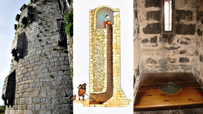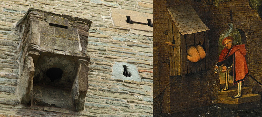В капитальных строениях — скажем, в замках — туалеты устанавливались в альковах или специальных пристройках к стенам и башням. Из них всё летело вниз — либо прямо в крепостной ров, либо в скрытую в недрах замка специальную цистерну. Последнее считалось более предпочтительным: трубы и дыры в стенах были слабым местом в обороне.