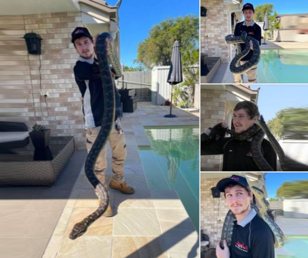 Но даже опытные змееловы иногда сталкиваются с проблемами: об этом рассказал Джошуа Кастл (Joshua Castle) из компании Snake Catcher Brisbane. На заднем дворе одного из жилых домов он поймал коврового, или ромбического питона (Morelia spilota) длиной около трех метров и весом около 10 кг.