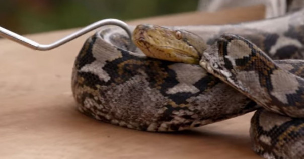 Трехметровый питон кусает змеелова