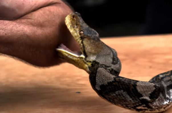 Питон кусает добровольца