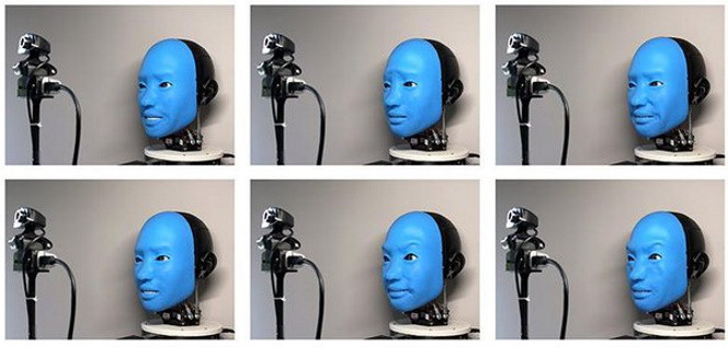 После этого внутренние нейронные сети Евы научились сопоставлять, какая команда отвечает за то или иное мимическое движение. На заключительном этапе кадры с лицом Евы были заменены на лица других людей, и робот повторял те же движения, которые видел на экране.