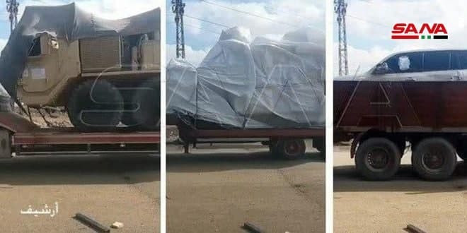 Корреспондент агентства САНА сообщил, что сегодня во второй половине дня американские оккупационные силы доставили два конвоя с военной техникой и материально-техническими средствами для поддержки своих незаконных военных баз на сирийской территории. Первая колонна из 40 автомобилей, включая груженые и крытые грузовики, рефрижераторы и транспорт с упакованными контейнерами, сопровождалась несколькими автомобилями группировок «Касад» и направилась в город Рмейлян.