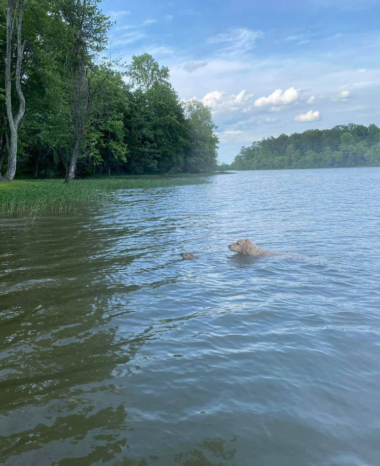 Мужчина живет на берегу озера – именно там он и заметил своего пса. Тот был занят важным делом: плыл в сторону барахтающегося в озере совсем маленького олененка. Не известно, как малыш оказался посредине водоема, но ситуация принимала опасный оборот. Взрослые олени способны переплыть реку, но даже они быстро утомляются, а у детеныша не хватит сил на то, чтобы долго продержаться в воде.