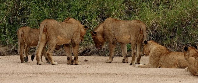 Через некоторое время другие члены прайда заинтересовались воинственным гостем. Пять львов от мала до велика окружили рака и даже обнюхивали его, склонив свои морды к членистоногому, но схватить его никто не решился. В результате животному удалось спокойно добраться до своей норы и благополучно скрыться.