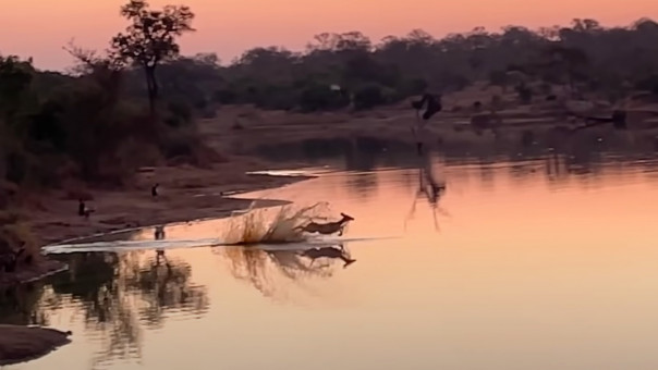 Но иногда бывают и исключения. Свидетельством счастливого спасения импалы поделился 24-летний рейнджер Дэниел Хитчингс, сопровождавший туристов в Национальном парке Крюгера. Сначала люди наблюдали, как гиеновидные собаки заканчивают свою трапезу, но тут на водопой неосмотрительно забрела импала, и внимание хищников переключилось на нее.