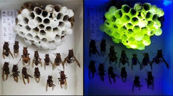 Группа исследователей из Университета Сорбонны, Вьетнамской академии наук и Парижского университета обнаружила, что гнезда нескольких видов ос светятся под ультрафиолетовыми лампами.