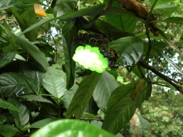 Чтобы выяснить это, команда по ночам бродила в темноте, освещая все вокруг ультрафиолетовыми лампами. Задачу осложняли опасные условия: нужно было подобрать подходящую защиту от змей, пауков, насекомых и других животных, активных в темное время суток. Однако идея себя оправдала: исследователи обнаружили гнезда азиатской осы Polistes chinensis, которые светились ярко-зеленым светом.