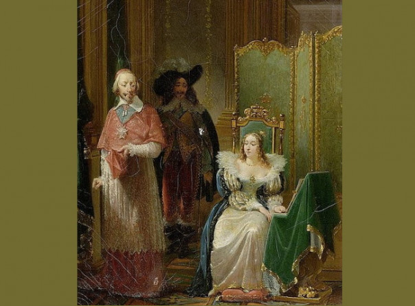 Устав от домогательств Ришелье, она в недобрый час согласилась на предложение подруги Мари сыграть с ним шутку. Когда он в очередной раз спросил, что может сделать для нее, королева ответила: «Я тоскую по родине. Не могли бы вы одеться в испанский костюм и сплясать для меня сарабанду?»