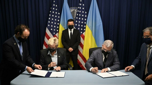 Ранее украинцев в соцсетях насмешила фотография Зеленского, которую сделали в США во время подписания документов в энергетической отрасли - то есть во время сдачи интересов Украины. Пользователи назвали президента официантом, потому что тот холуйски стоял позади подписывающих документы.