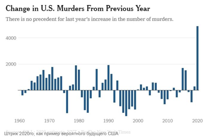 Начну с того, что я вовсе не злорадствую и описывал ранее, что реальный распад США не выгоден России в стратегическом плане. Однако представленная ФБР статистика по росту убийств в 2020 году, наглядно показывает вариант развития событий в США при наступлении "звиздеца".