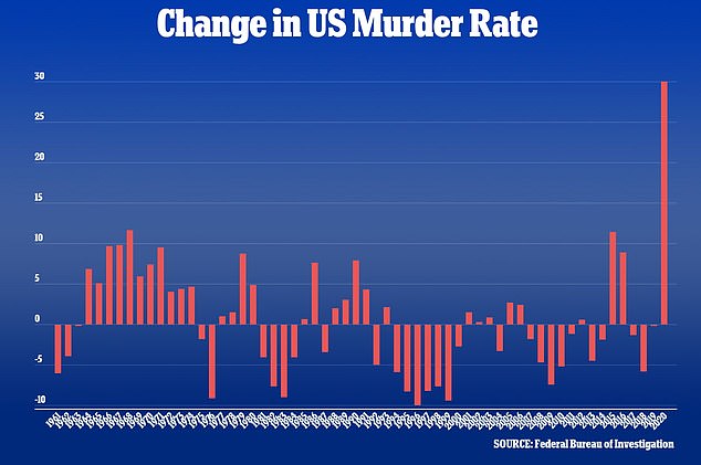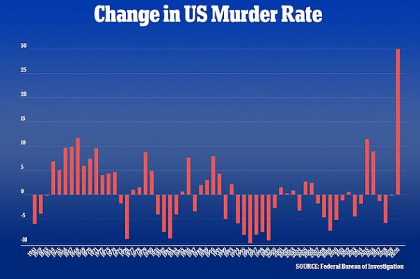 The New York Times сообщает, что по данным ФБР в 2020 году число убийств выросло на 29%. Предыдущий рекорд прироста за год был в 1968 году на 12,7%.