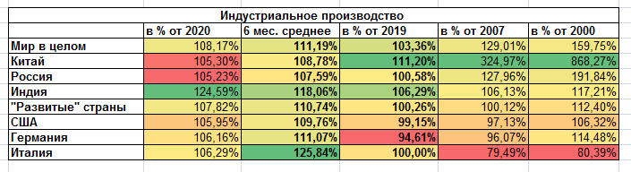 - текущие темпы роста промпроизводства Китая в плюсе, но налицо замедление, динамика хуже, чем была у него, к примеру, при крахе 2008 года;