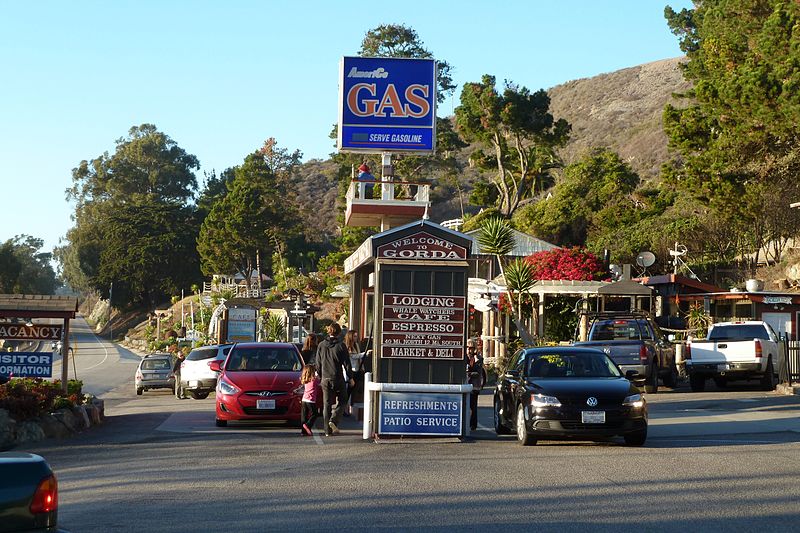 Небольшой городок Горда может похвастаться особым достатком, что делает его название, которое по-испански означает “Толстый”, довольно подходящим. Он расположен вдоль живописного шоссе 1, привлекая туристов почти отовсюду. Он известен несколькими вещами, в том числе запретом на рекламные щиты и баннеры. Здесь есть отель, пара ресторанов, откуда можно понаблюдать за китами, потягивая коктейли, и одинокая заправочная станция - дорогая одинокая заправочная станция.