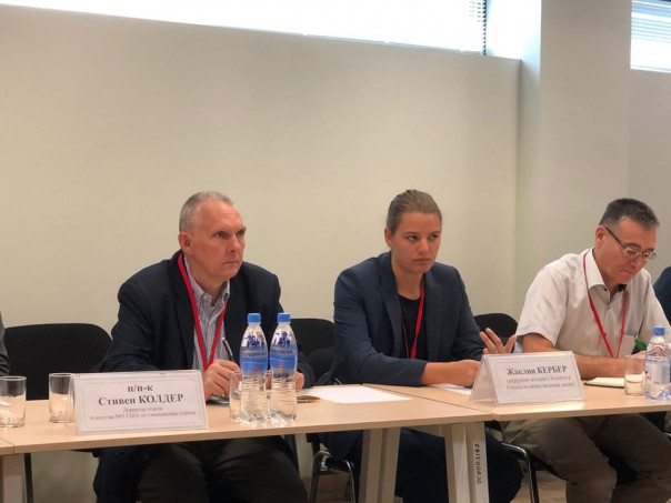 Подполковник Колдер и Жаклин Кербер из военного комитета Сената США заслушивают доклад директора НЦООИ, 12 августа 2019 г.
