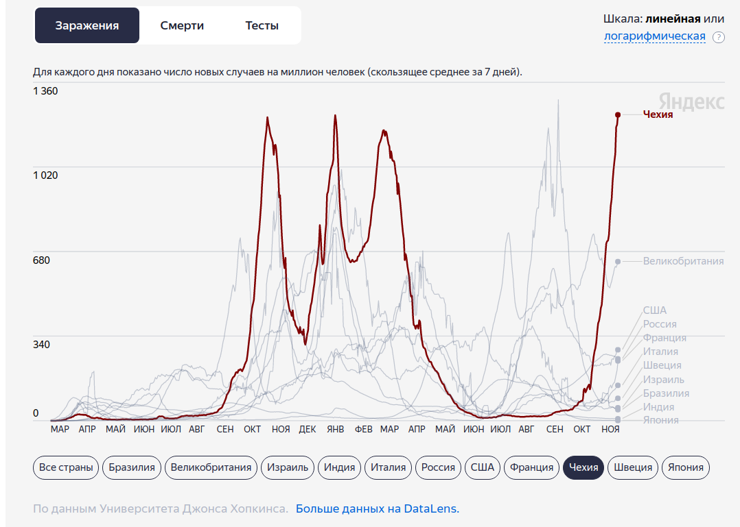 Но по сравнению с Россией в Чехии уровень вакцинации высочайший. Впрочем, там собираются вводить локдаун для не вакцинированных. И поверьте - введут.