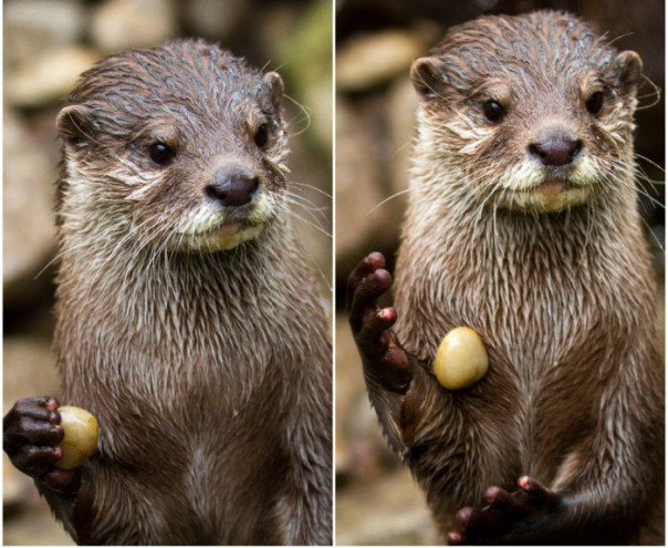 Возможно, «жонглировать» — слишком громко сказано. Выдры вовсе не орудуют камнями, подбрасывая их высоко над головой с завидной ловкостью. Они, скорее, быстро тасуют их мжду собой, цепко держа камни передними лапками и прижимая их к телу.