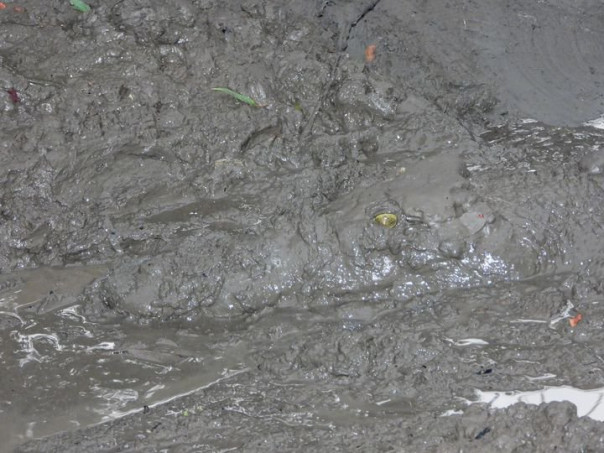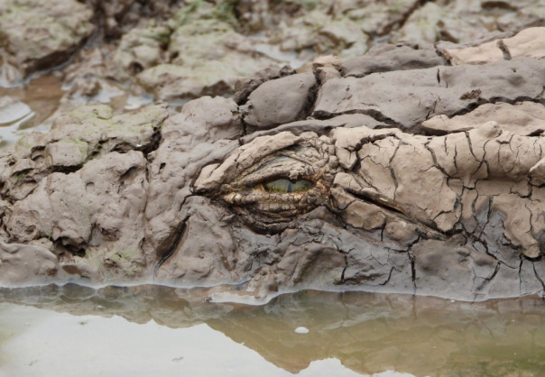 Нравится им и прятаться в грязи – поэтому любителям прогулок на природе в Австралии следует быть очень осторожными. За исключением «красивого камушка» – зорко следящего за ситуацией янтарного глаза – крокодил практически незаметен.