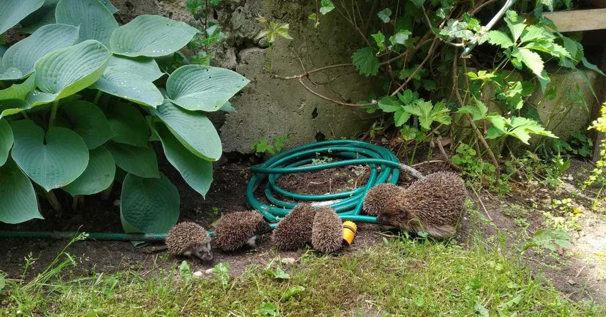 Эта семья ежей приняла шланг за змею и начала охоту. Отличный тренировочный макет!