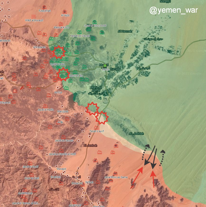Попытки организовать наступления на других фронтах у хадистов пока ничего не принесли, после первых неудачных атак наступающие группировки отходят на исходные позиции и не желают далее продолжать попытки прорвать оборону «Ансар-Аллах».
