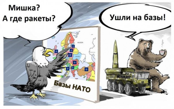 Более того, можно взять на себя ещё и дополнительные обязательства - не размещать российские ракеты на Украине. По поводу неразмещение мегатонных ядерных зарядов вдоль восточного побережья США и близ побережья Калифорнии.