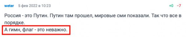 – Эти символы никого не интересуют, это же просто символические вещи, ничего более. У России нет выбора: сейчас есть нейтральная форма, и это надо принять. Вы знаете, это первая волна эмоций, а дальше все позабудется, все, что касается гимна, флага и нейтральной униформы. Все ок.